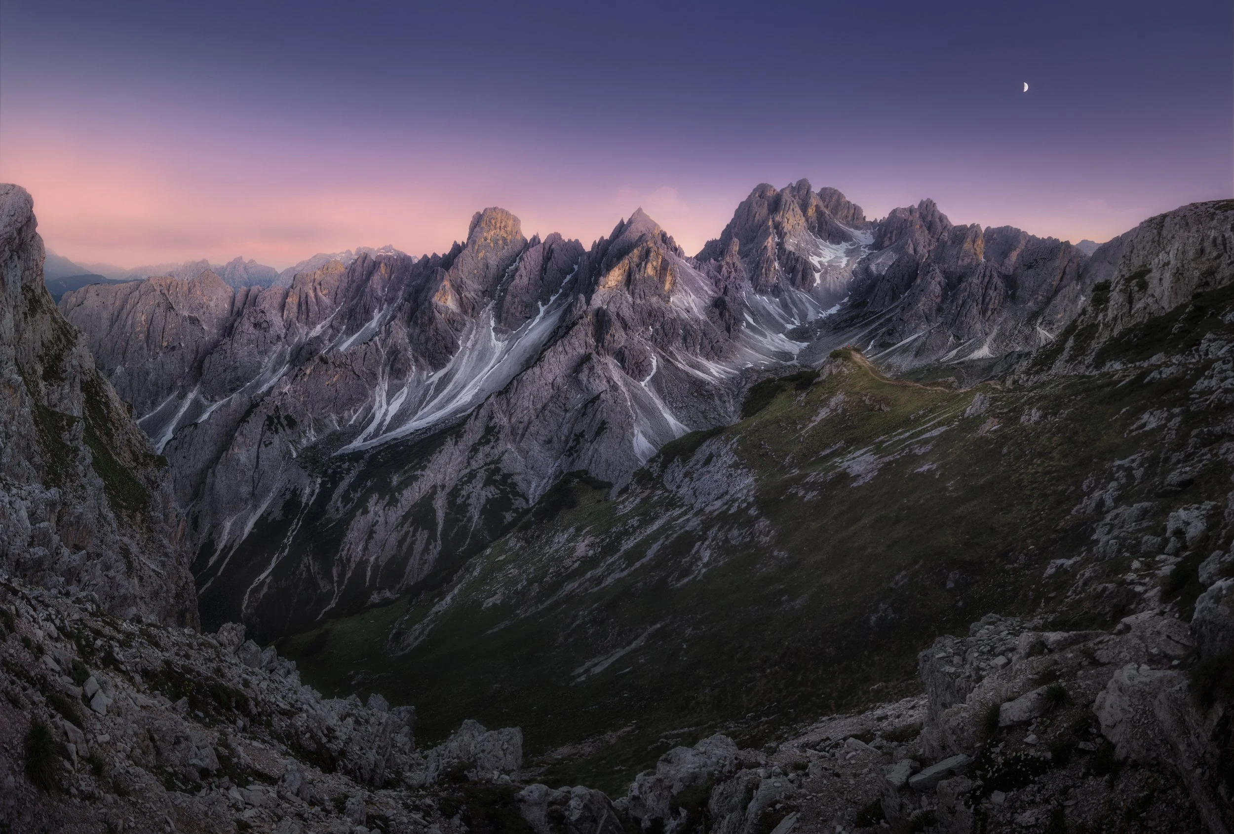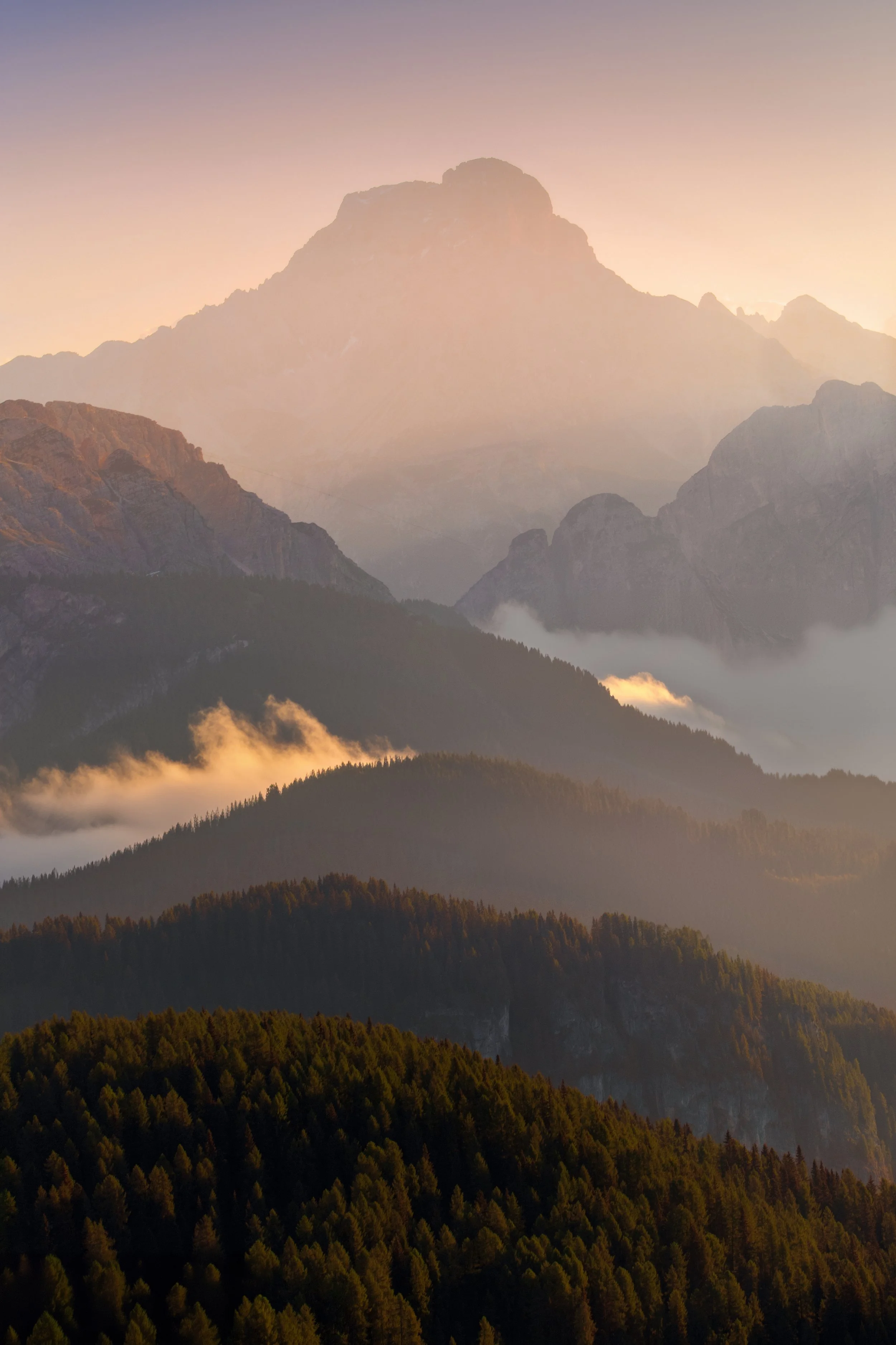 I was photographing at dawn in the Dolomites (light breaking over ridgelines, alpine Mountains ). With my wide‑angle, I captured the classic panoramic vista towering peaks, soft pink alpenglow. Technically good, but emotionally flat.